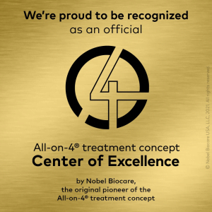 All-on-4® dental implants are a full set of implants that are designed to replace an entire arch of teeth using a minimum of 4 implants. The procedure involves computer guided keyhole surgery to give you solid teeth quickly and comfortably with minimal disruption to your life. Using at least 4 implants as a base, we fit a custom-made bridge that looks and acts just like natural teeth. You’ll potentially walk away with a full set of teeth in a day.